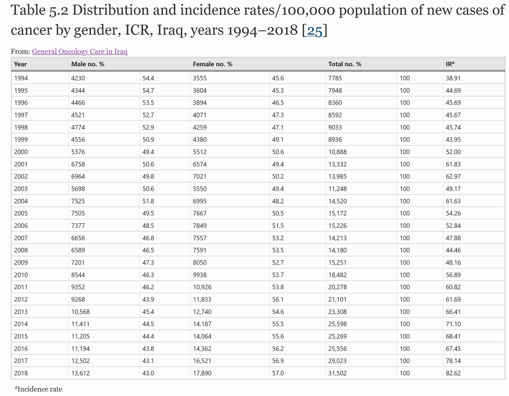 Но иракские ученые приводят несколько иные данные. В марте 2022 года в сборнике «Рак в арабском мире» (издание Института рака Burjeel из ОАЭ) опубликована статья профессора Нады Аль-Альван из Национального центра исследований рака при Багдадском университете «Общая онкологическая помощь в Ираке». В ней содержится информация о заболеваемости раком в стране, и если данные Джамаила за 1998 год близки к истине, то дальнейший рост заболеваемости куда менее резок.