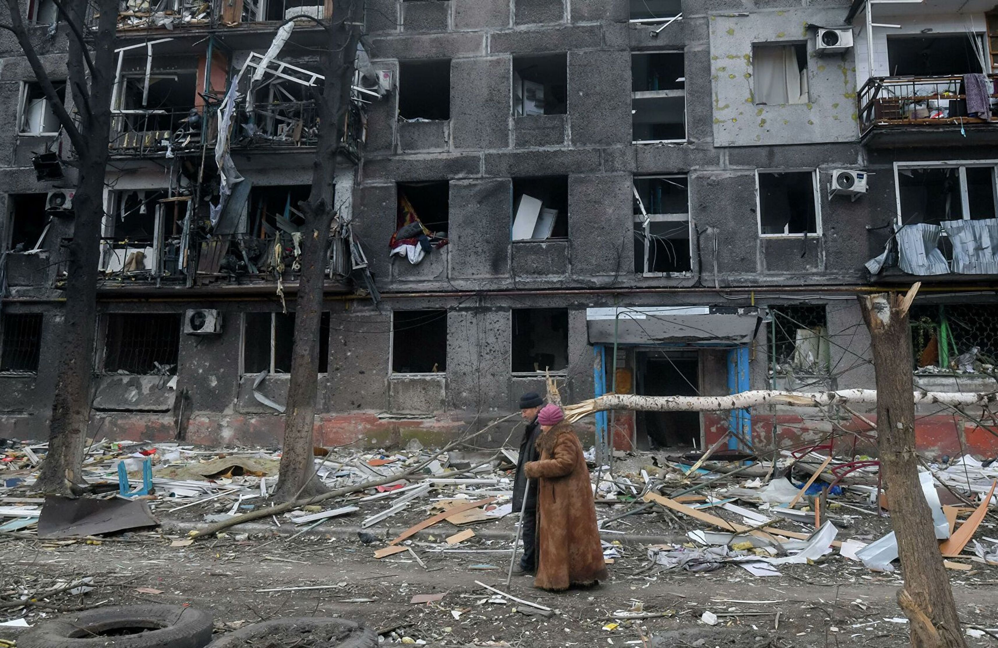 A house hit by a shell in Mariupol