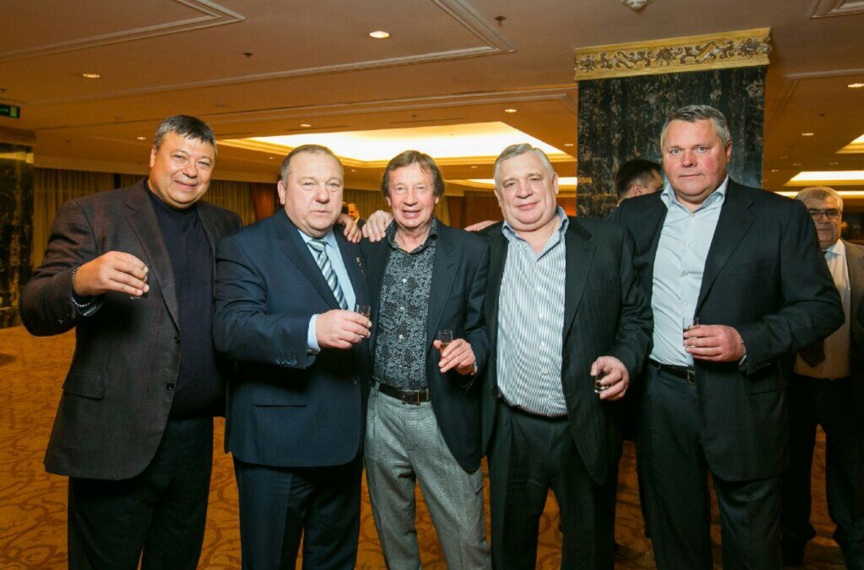 Судя по декору, фото сделаны в пятизвездочной гостинице Lotte Hotel в Москве в холле приемов. Гости, среди которых знаменитые солнцевские авторитеты Сергей Михайлов по кличке «Михась», Виктор Аверин по кличке «Авера», Владимир Шаманов, имеющий на груди орден героя России, тренер «Локомотива» Юрий Сёмин и другие, по-видимому, отмечают какое-то событие.