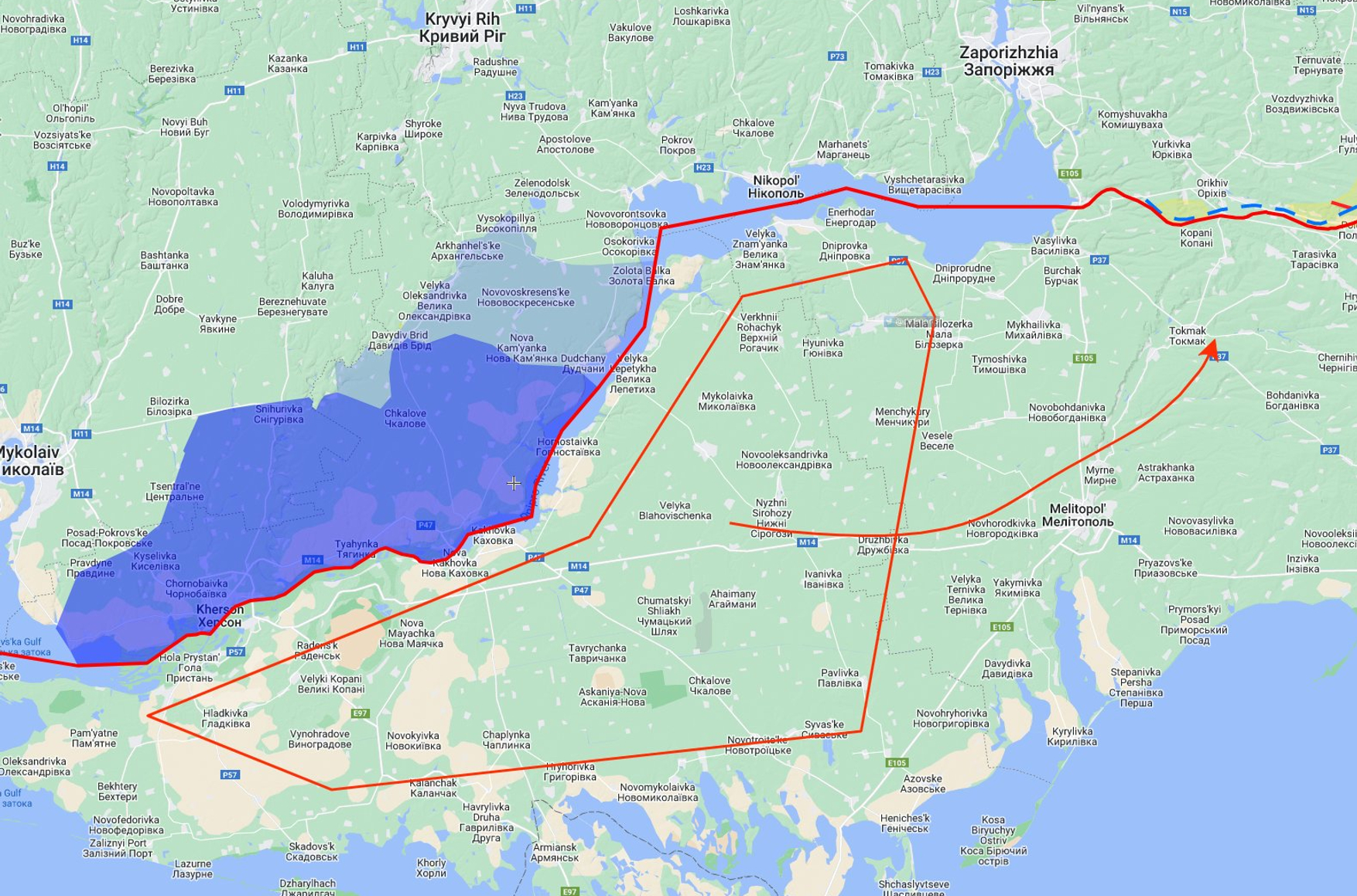 Как считают военные эксперты американского Института изучения войны (ISW), российские силы в Херсонской области «частично уязвимы» и могут оказаться изолированными. У военных ограниченное количество автомобильных и железных дорог в этом районе, по которым может идти снабжение группировки. Украинская армия уже обстреливает скопления войск и техники на дорогах.
