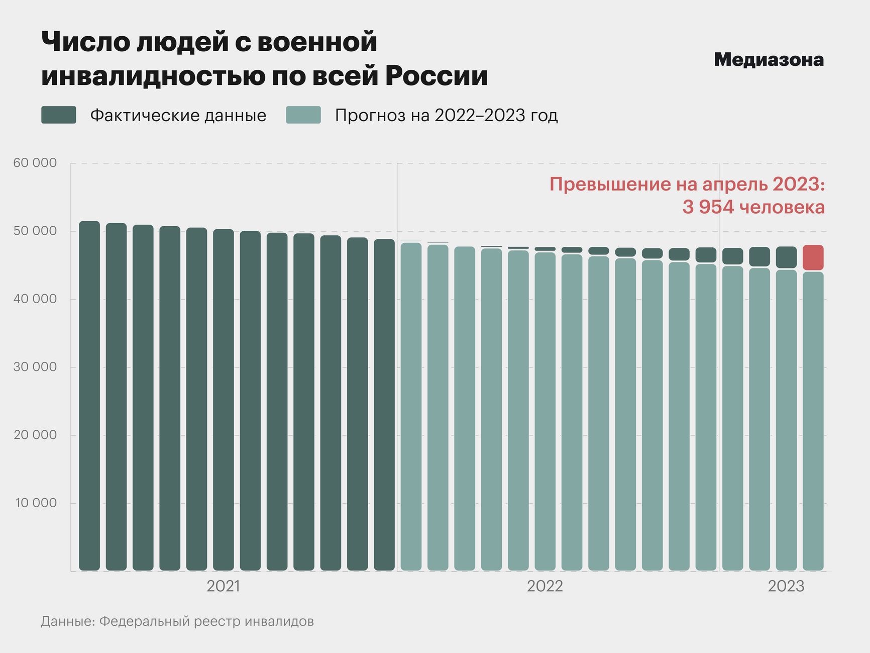 «Медиазона» справедливо отмечает, что «пополнение реестра людей с инвалидностью не показывает в реальном времени количество тяжелораненых на фронте, так как оформление инвалидности занимает несколько месяцев».