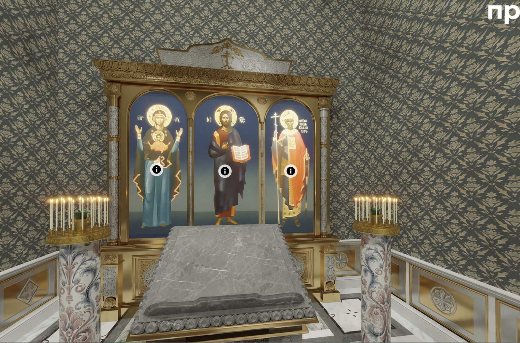 «Интерьеры дворца свидетельствуют, как сильно Путин изменился с тех пор, как объект был построен в начале 2010-х годов. В отреставрированной версии нет казино, стриптиза и комнаты с играми. Зато там теперь есть часовня, в которой размещена икона святого князя Владимира — небесного покровителя Путина. А одно из основных помещений дворца теперь украшено картинами с изображением битв и трупов. Главное полотно называется „Кто с мечом к нам придет, от меча и погибнет!“. Оригинал этого произведения занимает важное место в Большом кремлевском дворце, а фразу, давшую название картине, цитировал и сам Путин», — пишут авторы расследования.