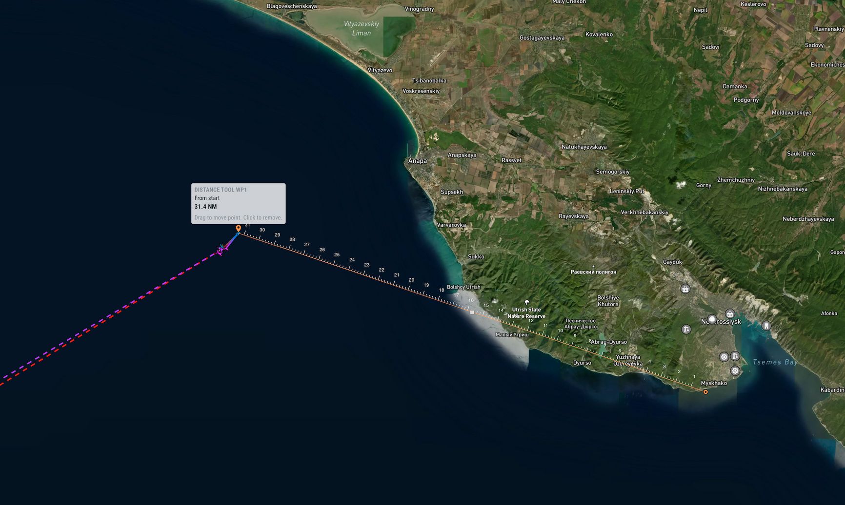 Судя по характеристикам танкера Koala, груженое судно от Анапы до следующей точки в 300 морских милях должно было потратить на путь примерно 30–40 часов при минимальной скорости, но не 11 дней. Медленнее идти оно не могло — это чревато проблемами с двигателем, пояснил The Insider морской эксперт на условиях анонимности. Таким образом, можно предполагать, что около недели судно также находилось в районе морского терминала КТК у берегов Краснодарского края, — от точки, где танкер выключил AIS, до терминала всего 31 морская миля. На преодоление этого расстояния и путь обратно танкеру необходимо около восьми часов. Поэтому у него оставалось более чем достаточно времени, чтобы перекачать нефть в грузовые танки.