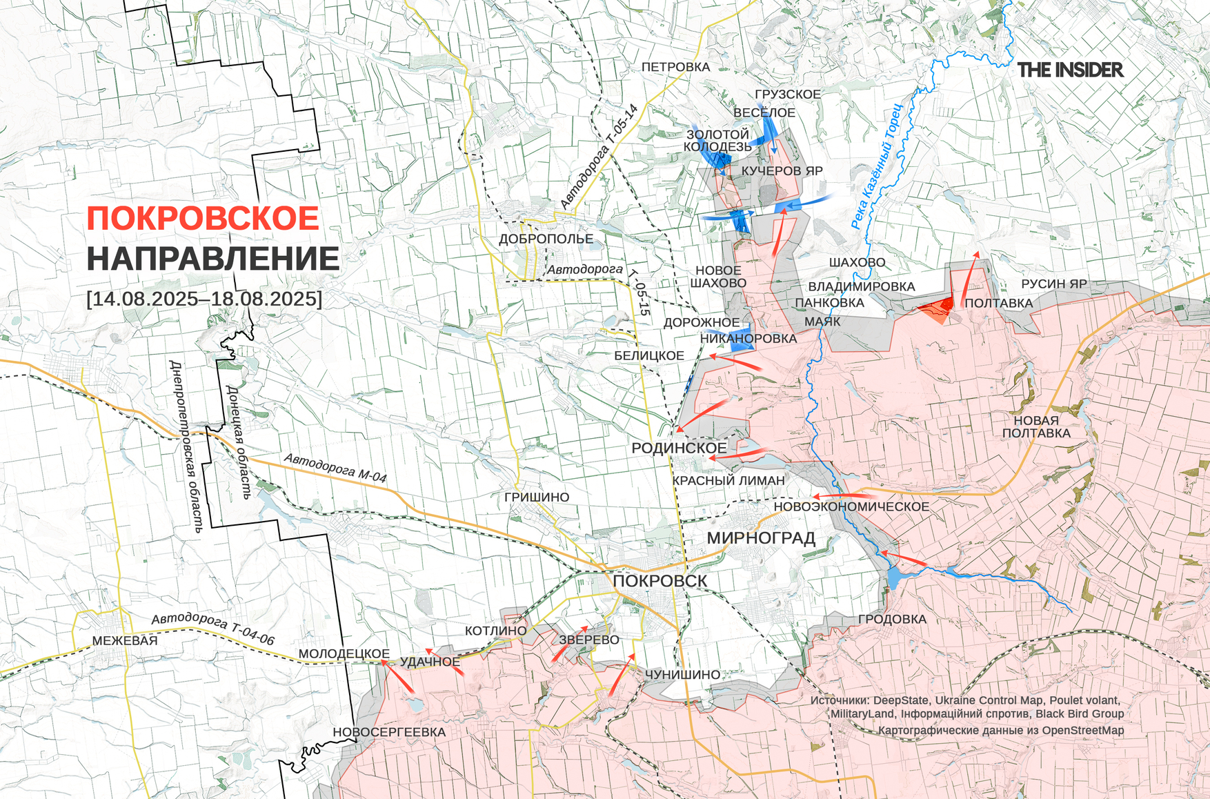 В DeepState сообщили 15 августа 2025 года о контратаках СОУ в районе целого ряда населенных пунктов, где ранее были замечены российские военные в ходе «прорыва» в направлении Доброполья. Согласно карте проекта, занятая территория оказалась рассечена на несколько частей. Аналитики DeepState рассказали, что украинское командование перебросило на участок свежие подразделения, кроме того, свою роль сыграло продвижение ВС РФ без поддержки аэроразведки и артиллерии, а также то, что им не удалось закрепиться в украинских ИФС.