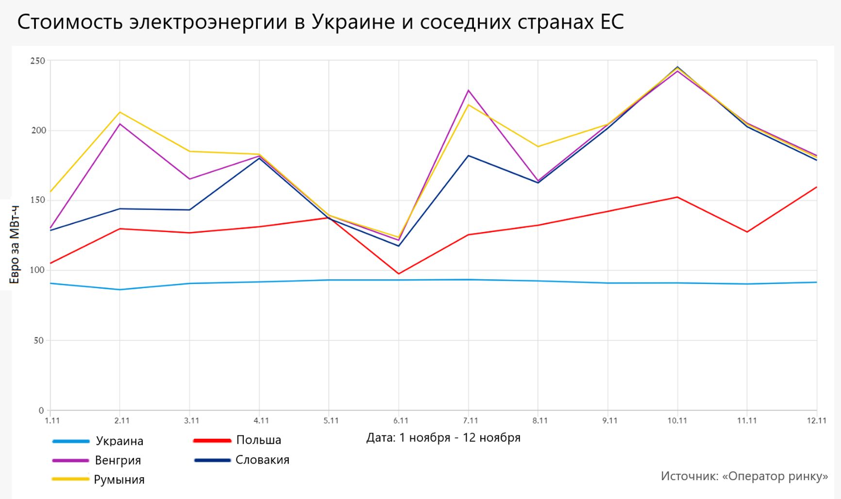 Во-вторых, импорт электроэнергии из Европы обойдется слишком дорого для Киева. К примеру, в октябре максимальная цена мегаватт-часа в Украине составляла менее 80 евро (3 тысячи гривен), а в Венгрии более 260 евро (10 тысяч гривен). Трейдерам придется продавать энергию по местным ценам в Украине, но покупать гораздо дороже. Поэтому, скорее всего, Украина начнет поставлять электроэнергию из ЕС только в самой критической ситуации.